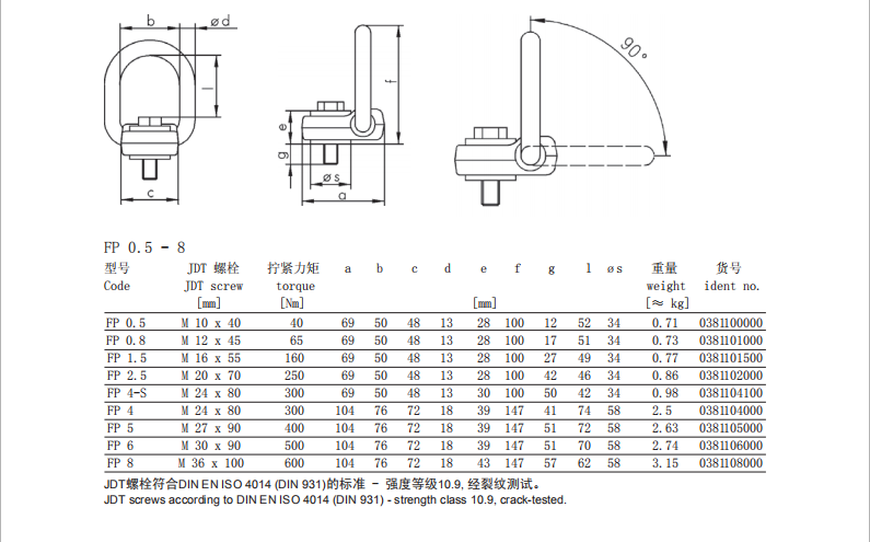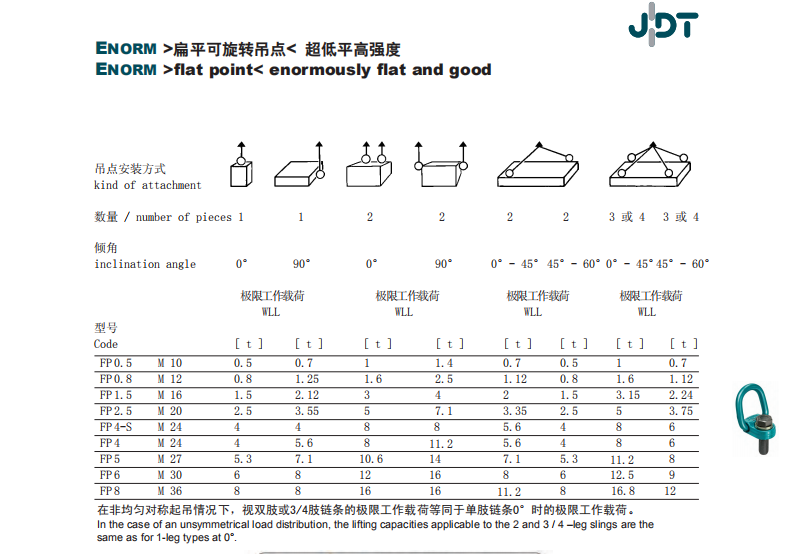 德國JDT可旋轉扁平吊點FP型 扁平側拉吊環