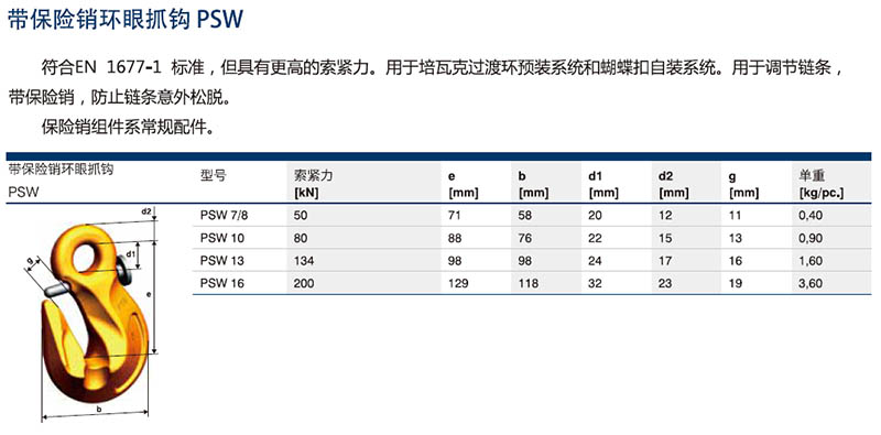 培瓦克Pewag帶保險(xiǎn)銷環(huán)眼抓鉤PSW