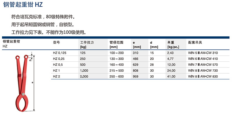 培瓦克Pewag鋼管起重鉗HZ